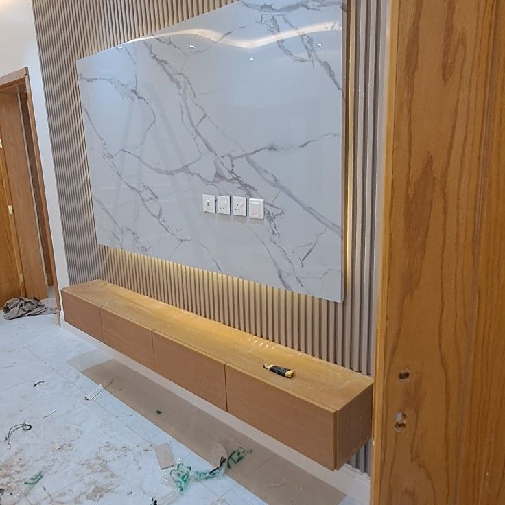 ألواح جداريّة، وحدات تخزين علوية وسفلية، وتركيب بدائل تشطيب للأرضيات والجدران. كلمات مهمّة: ديكورات مطابخ الرياض.